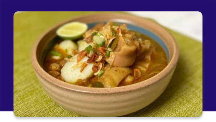 Sambil dikoreksi rasa, kikil siap disajikan dengan irisan daun bawang dengan sambal kemiri.